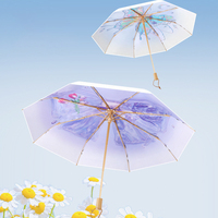 Лидер продаж, небольшой свежий ручной и автоматический деревянный Зонт с 3-кратным черным покрытием, предотвращающий УФ-излучение